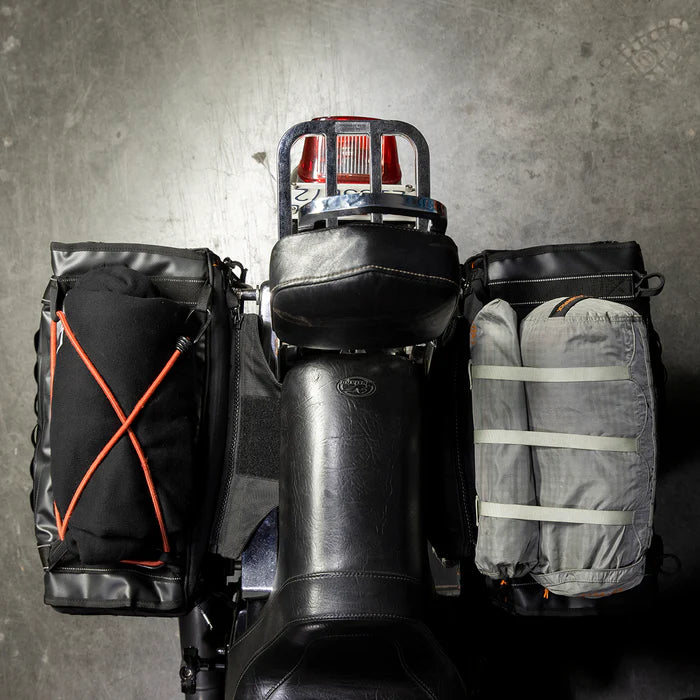 Il set di borse laterali Biltwell EXFIL-36 è il più grande della linea EXFIL, realizzato per i motociclisti che necessitano della massima capacità di stivaggio. Ogni borsa può contenere 36 lattine da 330 ml e si monta con un supporto universale che si inserisce sotto la sella e sopra il parafango. Realizzate in nylon balistico 1680 denari trattato contro i raggi UV con pannelli trattati in PVC e fondo in tela resistente al calore, sono progettate per affrontare lunghi viaggi e condizioni difficili mantenendo la loro forma e proteggendo la tua attrezzatura.