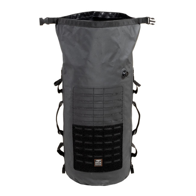 La borsa impermeabile EXFIL-65 2.0 è uno degli articoli più versatili della linea EXFIL, progettata per affrontare qualsiasi avventura mantenendo la tua attrezzatura completamente protetta. Realizzata in tela cerata rivestita in PVC con fondo rinforzato, è 100% impermeabile e resistente alla polvere. La chiusura roll-top e la tecnologia "FVT" (Fart Valve Technology) consentono all'aria di fuoriuscire per la massima compressione, mentre undici file di MOLLE tagliate al laser e molteplici punti di fissaggio offrono un montaggio flessibile e un'espansione dell'attrezzatura. Che sia fissata verticalmente a un sissy bar o appoggiata su un portapacchi, ha le dimensioni perfette per l'attrezzatura da campeggio, l'abbigliamento o gli oggetti essenziali per il viaggio.