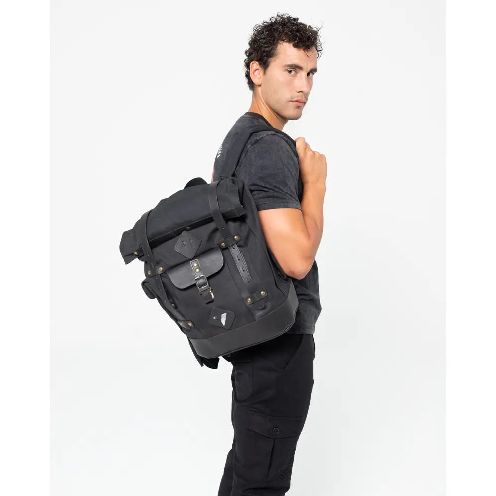 Lo zaino da moto Oasis II unisce lo stile classico alla funzionalità moderna. Realizzato in cotone cerato e pelle di alta qualità, il tessuto è idrorepellente grazie al rivestimento in cera. È dotato di due tasche esterne per un accesso rapido, uno scomparto interno per documenti o laptop e una cerniera laterale per accedere facilmente alla sezione principale. Il materiale riflettente sui manici posteriori migliora la visibilità, mentre le cuciture rinforzate garantiscono la durata nel tempo sia in moto che a piedi. Con una capacità di 14,7 litri, è pratico per l'uso quotidiano e per i viaggi.