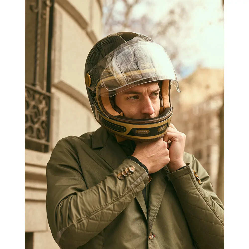 È stato progettato per chi cerca un'estetica classica e realizzato in fibra di carbonio. Interni in pelle, con sistema di chiusura a doppio anello facile da usare per una vestibilità perfetta. Presenta un'imbottitura interna rimovibile, multi-densità e lavabile, prese d'aria e chiusura posteriore per il fissaggio degli occhiali. La visiera iniettata garantisce una visione chiara in tutte le condizioni atmosferiche. Il casco Roadster II è omologato ECE/ONU R.22.06.