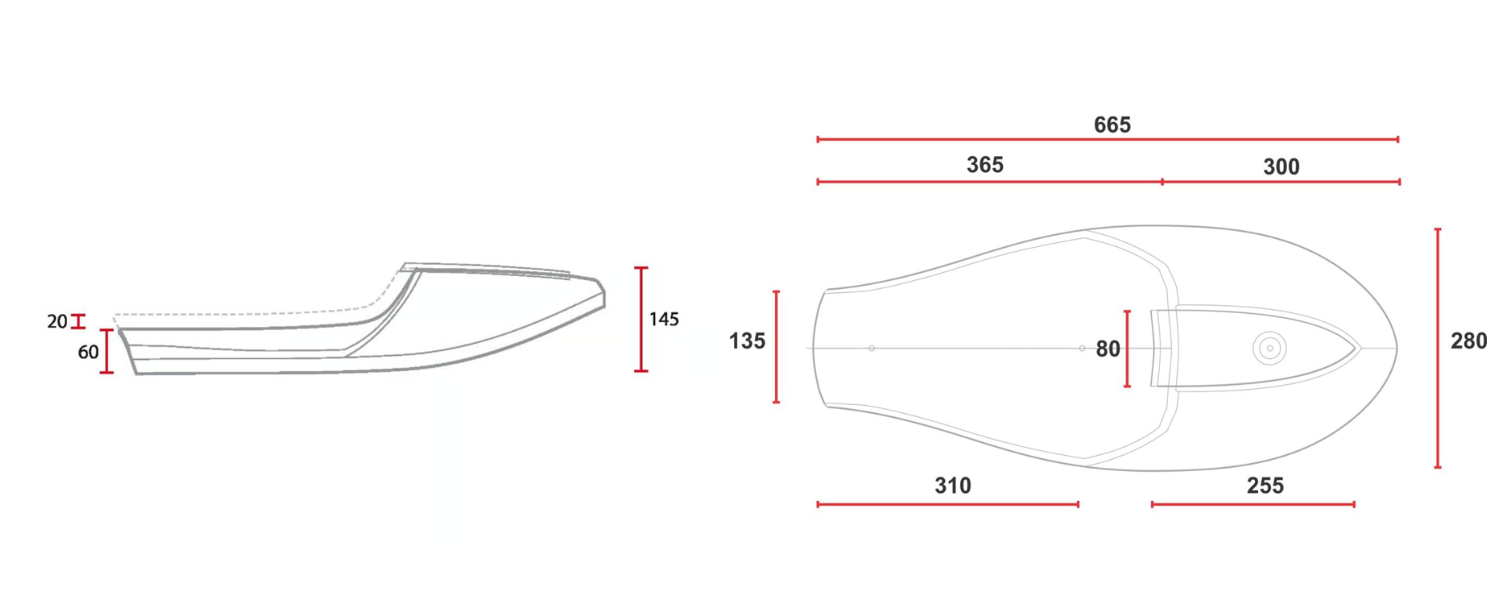 Questa sella presenta una forma moderna neo café con una silhouette posteriore più definita e aggiornata. Con la sella e la carenatura rivestite, offre un look pulito e coerente dalla parte anteriore a quella posteriore. Un'ottima scelta se desideri dare alla tua moto uno stile café racer più contemporaneo.
