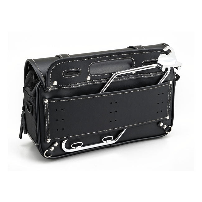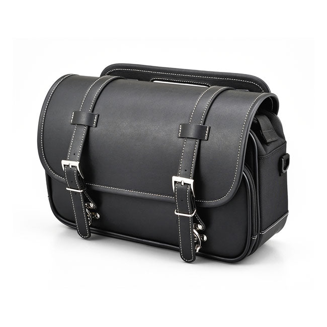 La borsa universale per moto Daytona è una borsa versatile che può essere montata sia sul lato sinistro che sul lato destro della moto. Dotata di diverse opzioni di montaggio sul retro, include cinghie in pelle e nylon per il fissaggio. La struttura rinforzata aiuta la borsa a mantenere la sua forma anche quando è vuota, mentre le chiusure a clip rapida con cinghie regolabili in lunghezza garantiscono una chiusura sicura.