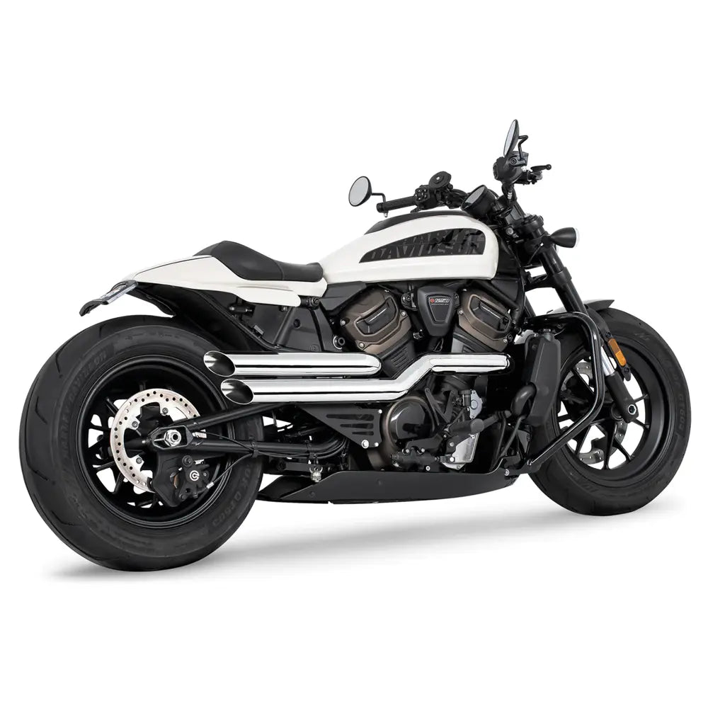 Scatenate il rombo profondo di una hot rod con lo scarico Freedom Performance Amendment Side Slash per Harley. Questo sistema aumenta la coppia e la potenza, pur mantenendo il classico stile 2-into-2.
