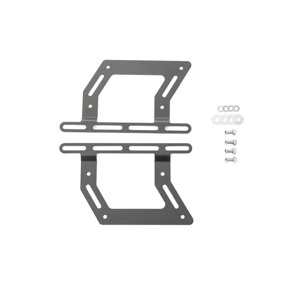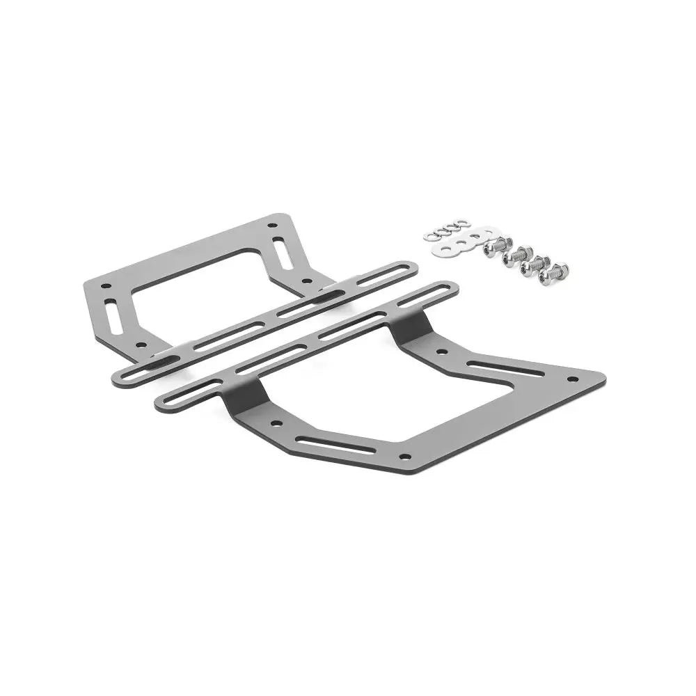 Set di staffe universali per borse laterali realizzato in acciaio piatto con finitura nera opaca. Questa struttura è facile da modificare, saldare e riverniciare, se necessario. Realizzato in acciaio dello spessore di 4 mm, sostiene il lato posteriore delle borse laterali.
