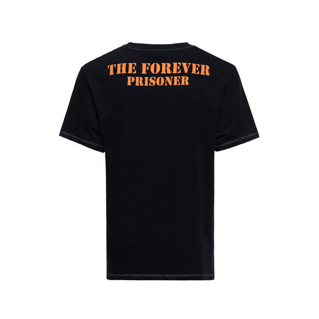 Audace, luminosa e pronta a far girare la testa. La t-shirt County Jail si distingue per le cuciture a contrasto e le vivaci stampe arancioni sul davanti e sul retro.