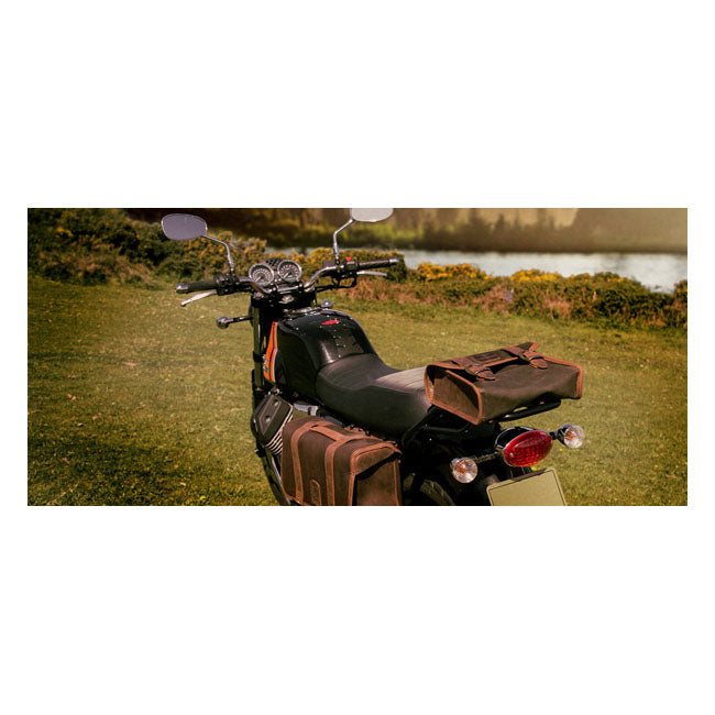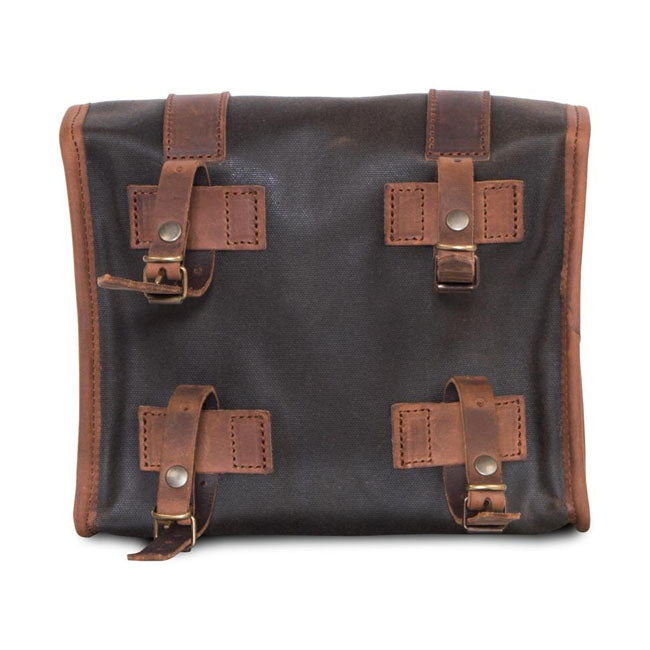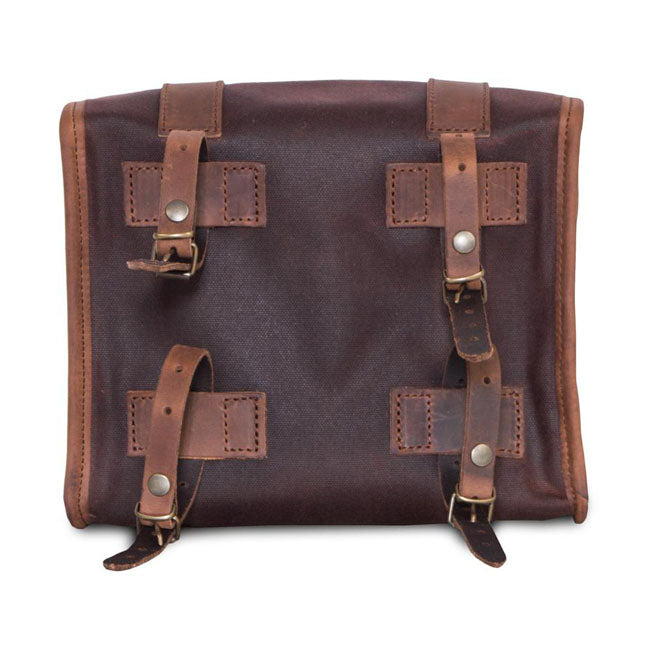 La borsa laterale vintage Mini Ammo è una borsa compatta in stile retrò realizzata per motociclette classiche e retrò. Realizzata a mano in tela di cotone cerata da 22 once e pelle pieno fiore conciata al vegetale, offre resistenza, impermeabilità e un look vintage che invecchia magnificamente.