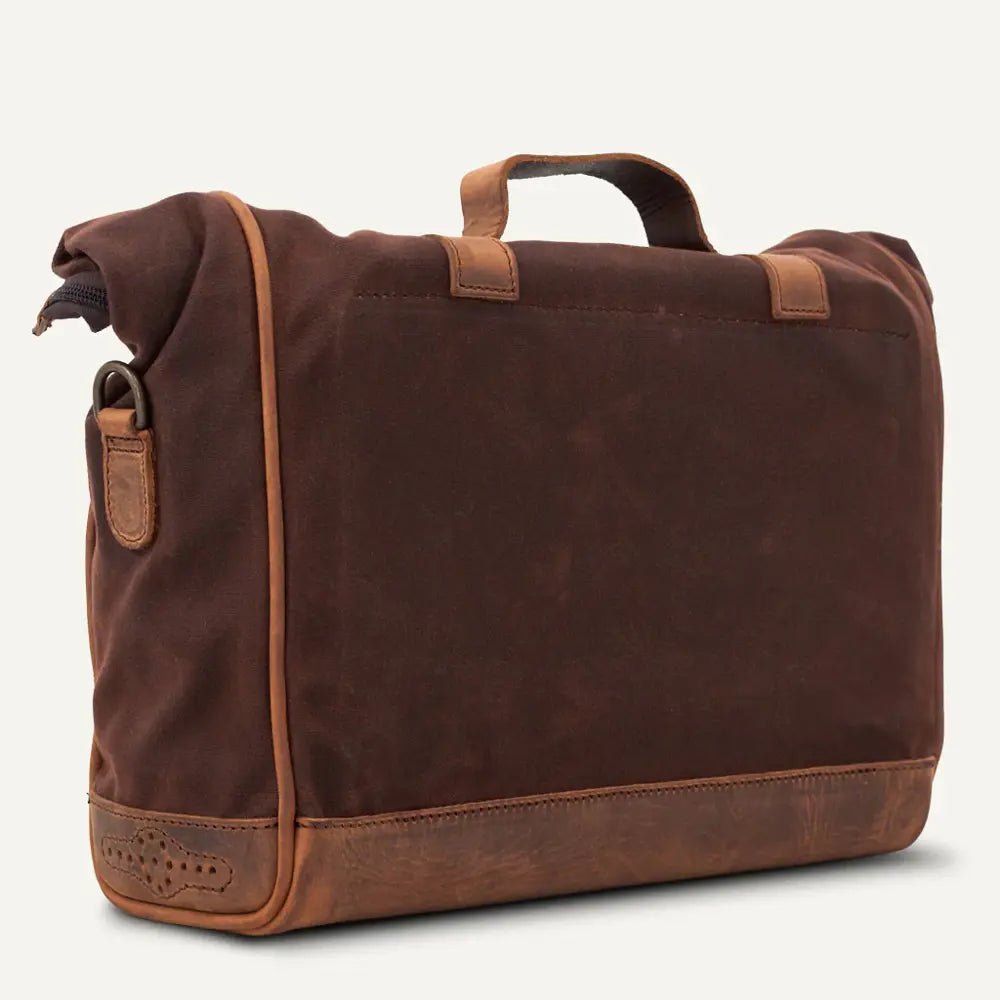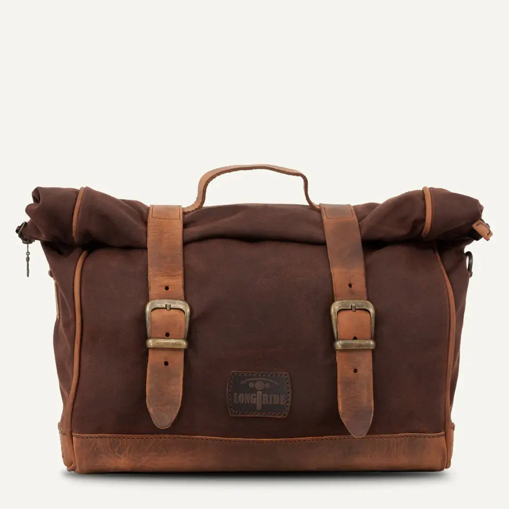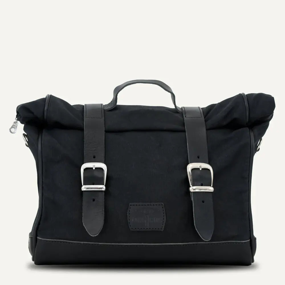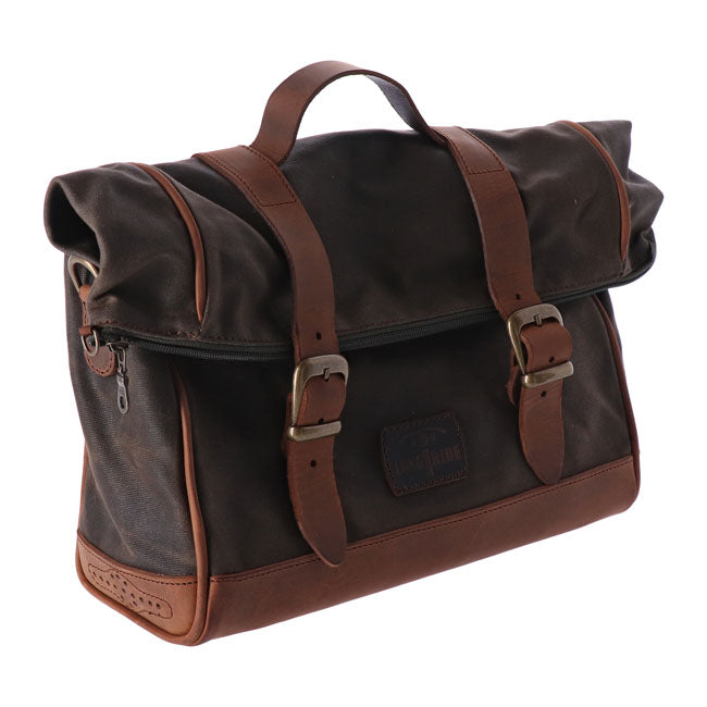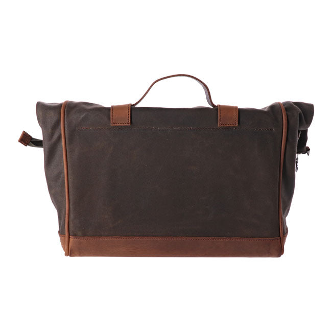La borsa da moto vintage Mini Patriot Roll Top Click-On si ispira alle borse messenger utilizzate dall'esercito francese. È realizzata in tela francese da 22 once di altissima qualità e pelle belga conciata al vegetale.