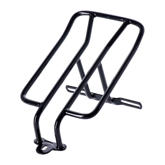 Questo portapacchi posteriore si monta sulla staffa della targa e sulla sella. Aggiunge un modo semplice per fissare gli oggetti e un look fantastico alla tua Harley.