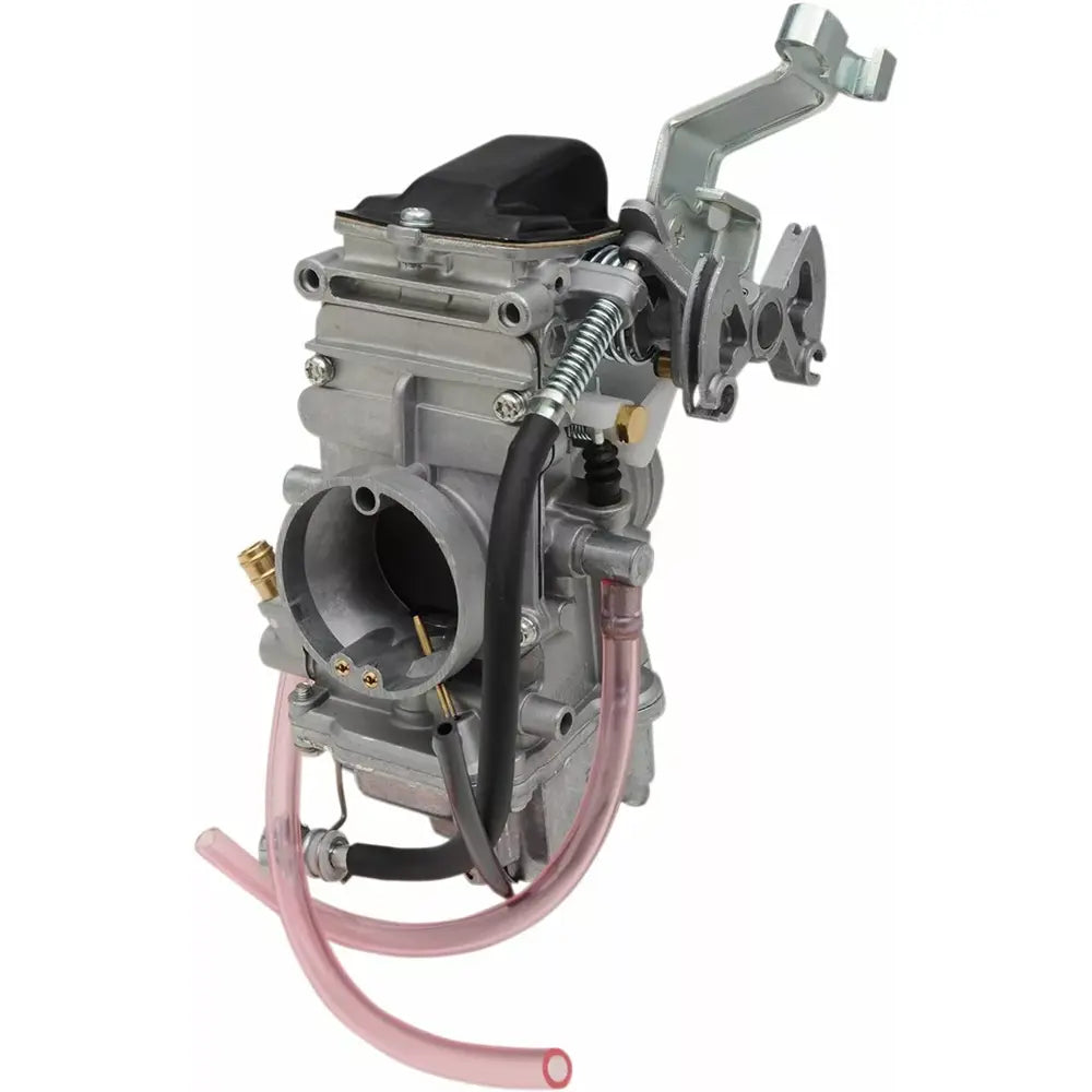Carburatore a scorrimento piatto da Mikuni che offre significativi miglioramenti delle prestazioni rispetto ai vecchi carburatori a otturatore rotondo.