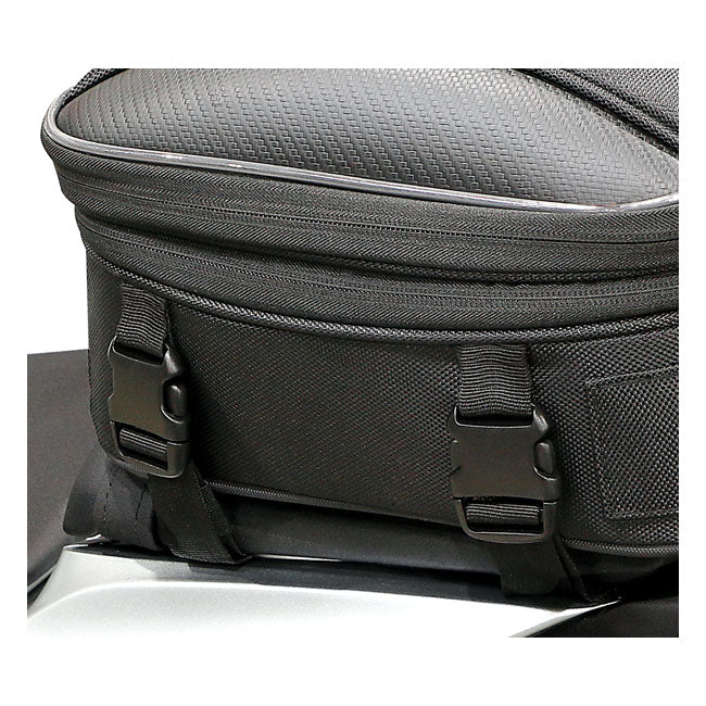 La borsa posteriore/sella Commuter Touring è la più grande della serie Commuter, con una capacità fino a 33 litri, ideale per viaggi più lunghi o moto più grandi. Realizzata in tessuto UltraMax con la massima protezione dai raggi UV, è dotata di un coperchio in EVA stampato con dettagli in stile carbonio, bordature riflettenti e un interno foderato che mantiene la sua forma. Grazie al sistema di montaggio a sgancio rapido e alla base antiscivolo, si installa in modo sicuro sulla maggior parte delle sezioni posteriori o delle selle. Il design espandibile può contenere facilmente un casco integrale, mentre le cerniere chiudibili a chiave, le cinghie di fissaggio interne e una copertura antipioggia impermeabile garantiscono che la tua attrezzatura rimanga al sicuro e all'asciutto.