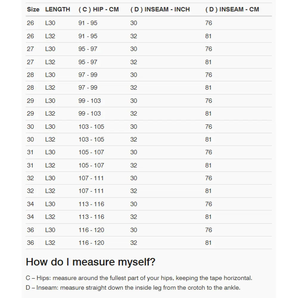 - Tapered fit: roomier at the thighs, slimming from the knee down