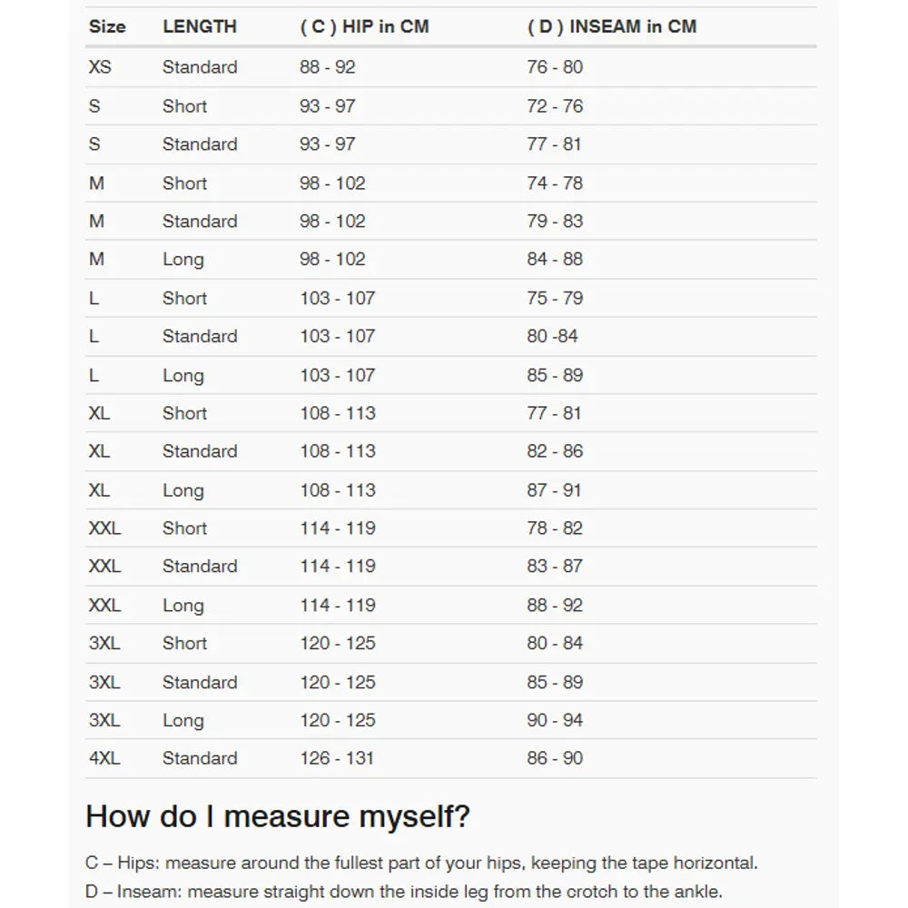 - Ventilation panels on upper thighs for airflow in warm weather