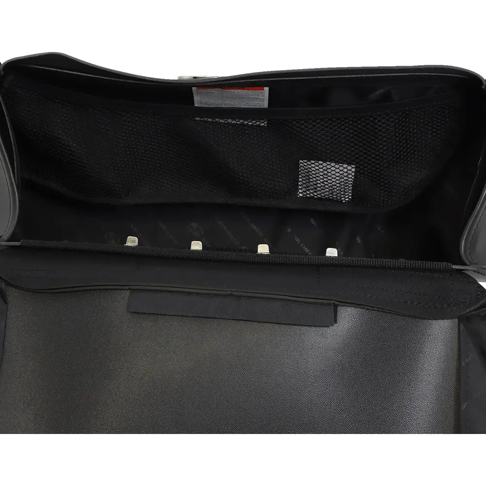 Queste borse laterali Drifter extra jumbo offrono un ampio spazio di stivaggio mantenendo un profilo classico. Realizzate con un mix di vera pelle, vinile di qualità marina, ottone cromato e un telaio resistente, sono progettate per durare nel tempo e mantenere la loro forma anche quando sono vuote. Il sistema di montaggio a strappo le rende facili da rimuovere, mentre il giogo regolabile consente di adattarle con precisione.