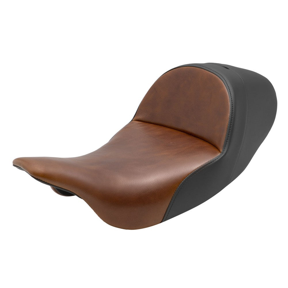 Vi presentiamo l'ultima novità della famiglia di selle singole Saddlemen Renegade, la sella Lariat per Harley-Davidson. Combinando l'estetica robusta della pelle marrone invecchiata con l'ingegneria avanzata di Saddlemen, questa sella posiziona il pilota più in basso per migliorare il controllo e la sicurezza di guida.