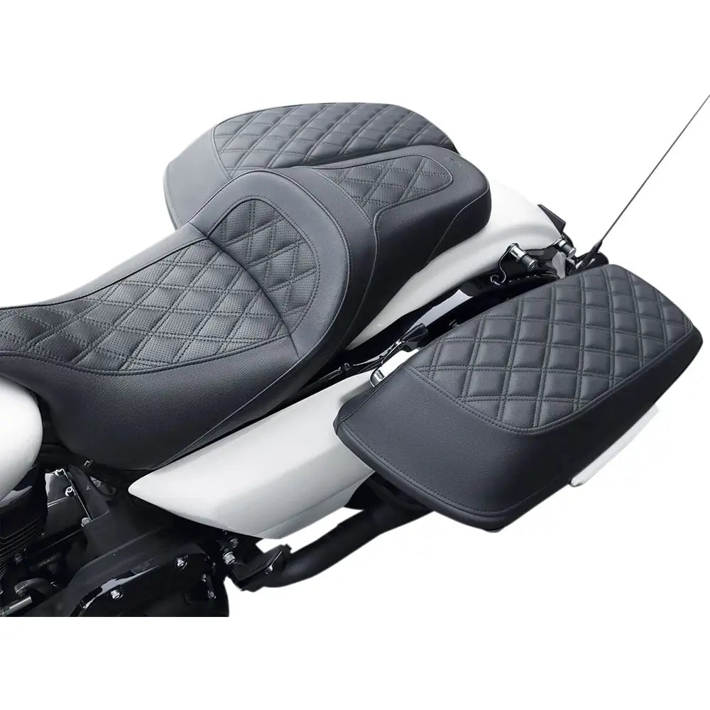 Queste coperture per il coperchio delle borse laterali proteggono le borse rigide della tua Harley Touring da graffi, segni e detriti stradali, abbinandosi allo stile della tua sella Saddlemen. Il retro morbido non danneggia la vernice e l'esterno resistente alle intemperie garantisce una lunga durata. Si installano facilmente senza forature o modifiche.