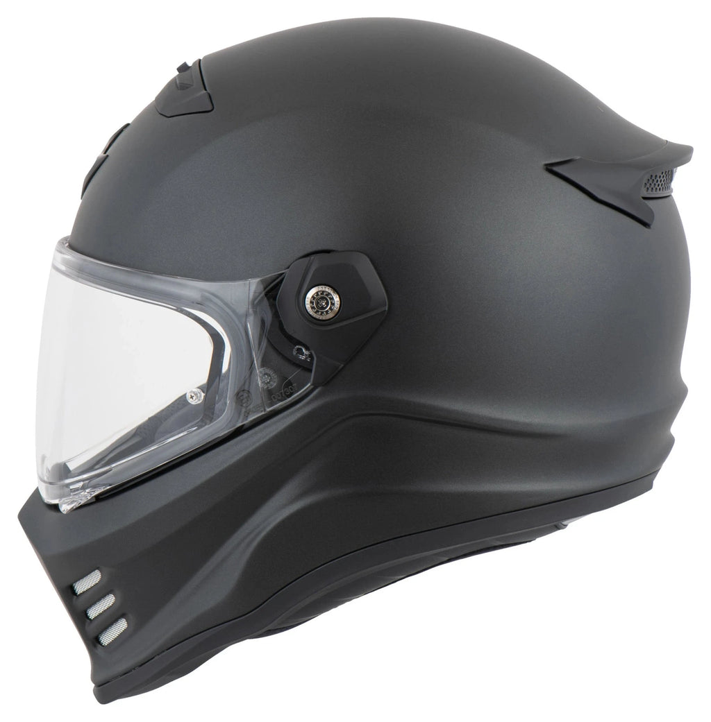 Il creatore dell'originale casco da motociclista Scorpion Covert/Combat ha ora sviluppato una versione integrale, il Covert FX! Questo casco presenta lo stesso stile tagliente e la stessa funzionalità che i motociclisti si aspettano da Covert FX. Scorpion Covert FX, con l'aggiunta di ulteriori vantaggi per una maggiore protezione e comfort. Realizzato con la massima cura utilizzando le più recenti fibre di vetro, aramide e poliresina, il Covert FX offre una resistenza superiore pur rimanendo estremamente leggero. La calotta a basso profilo è ottimizzata dal punto di vista aerodinamico, per garantire un'esperienza di guida ottimale sia che si tratti di pendolarismo in città che di tour a lunga distanza. Inoltre, grazie all'omologazione ECE R22.06, potete essere certi dei suoi standard di sicurezza.