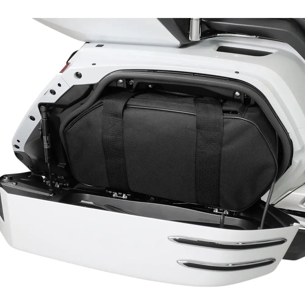 Questo rivestimento per borsa laterale è sagomato per adattarsi perfettamente al profilo della borsa laterale della Honda Gold Wing, garantendo una vestibilità perfetta e un facile caricamento. Con 15 litri di spazio di stivaggio, è dimensionato sia per i viaggi che per gli spostamenti quotidiani. La doppia cerniera superiore semplifica le operazioni di carico e scarico, mentre le maniglie di trasporto rinforzate consentono di sollevarlo e trasportarlo facilmente dalla moto.