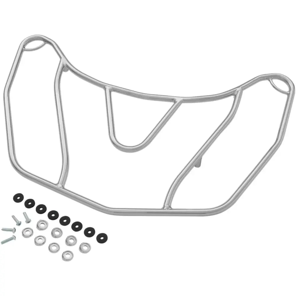 Questo portapacchi è progettato per adattarsi perfettamente al bagagliaio della Gold Wing, offrendo numerose opzioni di fissaggio per le borse da viaggio. Gli angoli antiscivolo mantengono le cinghie ben salde e la forma si adatta perfettamente al bagagliaio, sia che si trasportino bagagli o meno. La ferramenta e le istruzioni sono incluse per facilitare l'installazione.