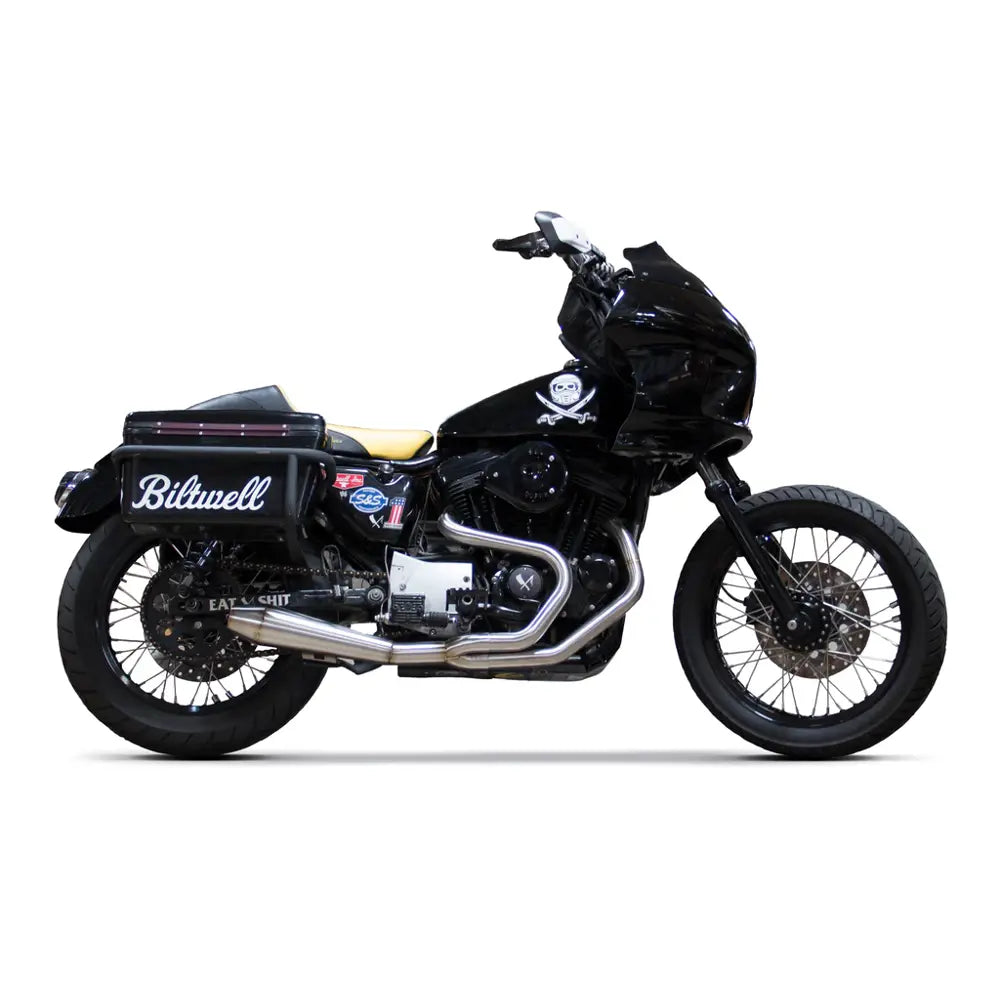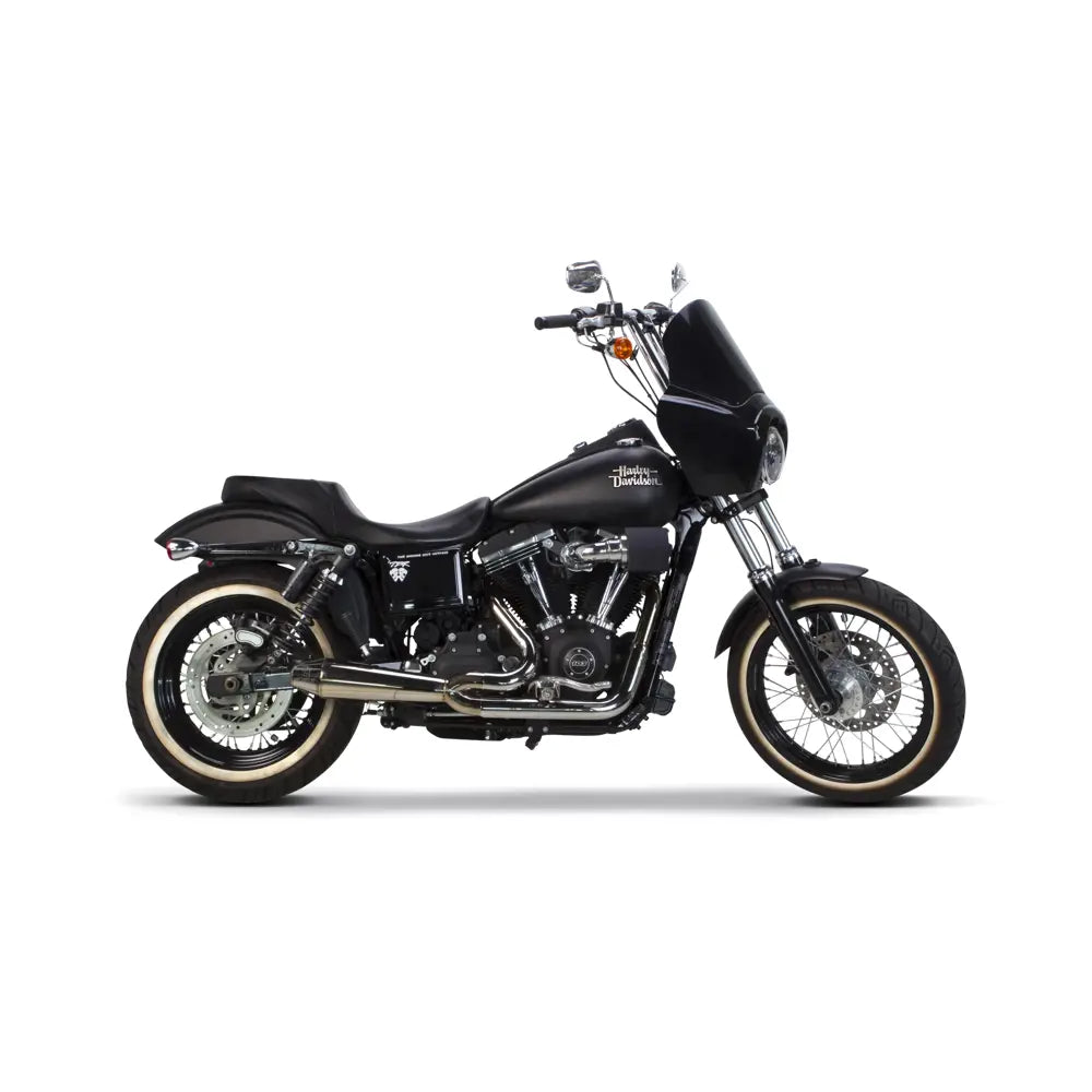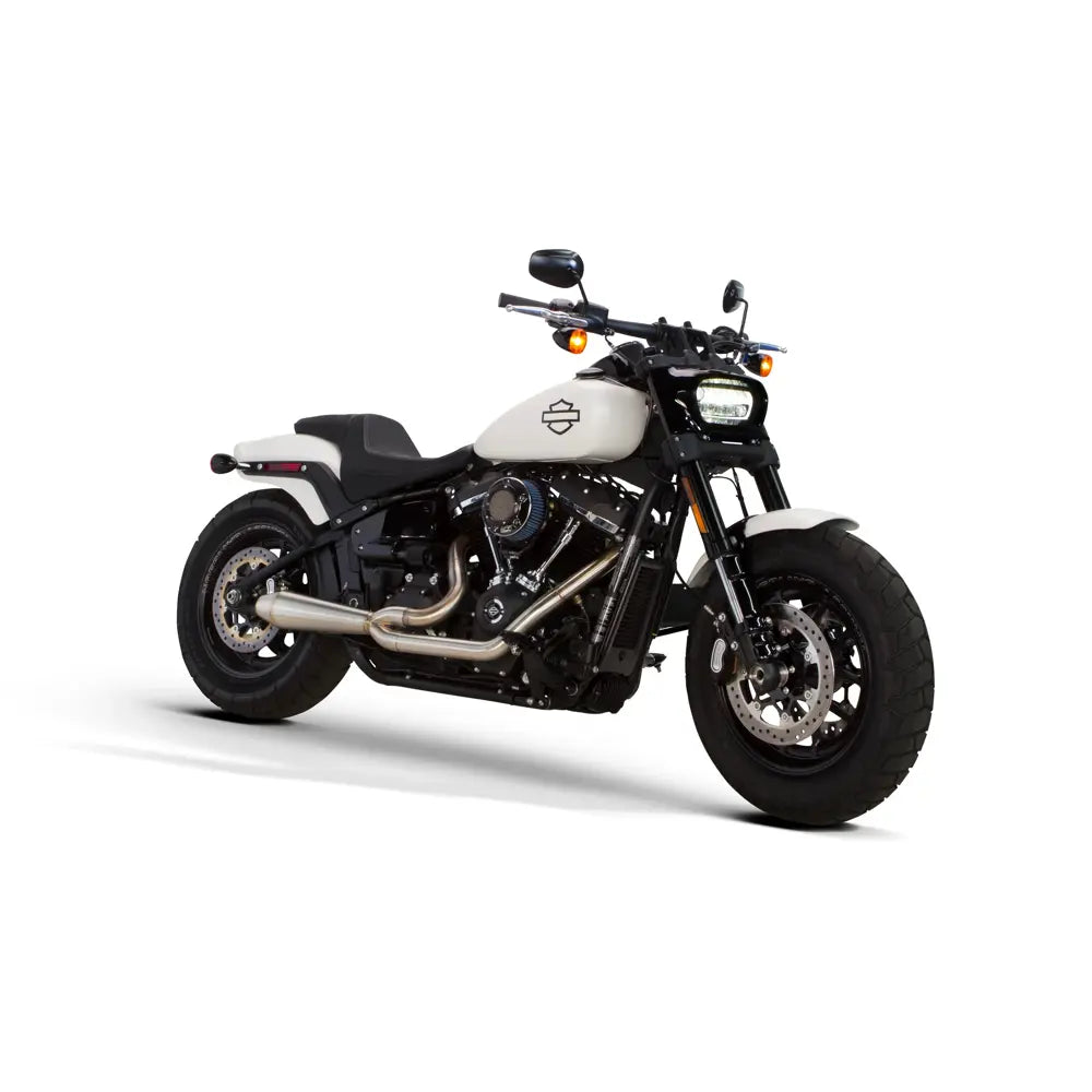 Nota per 18-25 Softail (eccetto Low Rider ST / Sport Glide / Heritage): Questo scarico si adatta alla maggior parte dei tipi di borse da sella montate su questi modelli se utilizzato con questo kit di riposizionamento delle borse.