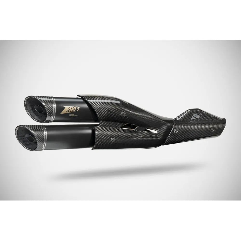- Top Gun: Silenziatori cilindrici con terminali in fibra di carbonio a taglio dritto.